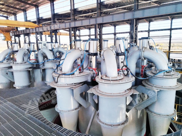 在金礦廠,金礦選礦過(guò)程中的水力旋流器負(fù)責(zé)為浸出或浮選工藝設(shè)置研磨裝置。它確保研磨顆粒的尺寸適合炭漿法 (CIP) 或炭浸法 (CIL)。這減少了化學(xué)品的使用,并提高了金的釋放率,因此吸附或電解沉積等后續(xù)工序能夠回收更多金,減少浪費(fèi)。